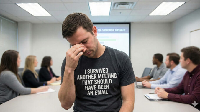 Witnesses report that Davidson maintained a “listening face” for the duration of the event, despite his internal monologue screaming for release. The meeting, which could have easily been summarized in three bullet points sent via Slack, is part of a growing epidemic in corporate America.